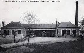 " Au fond de la vallée, le long du cours d'eau, passait la voie ferrée et la grande route de Tours à Châteauroux, et c'est près de la gare, à environ 3 km du bourg de Verneuil, que fait construite la laiterie coopérative de la région lochoise, inaugurée le 26 juin 1910 par le Préfet d'Indre-et-Loire, entouré de nombreuses personnalités car, ce jour-là, on inaugurait aussi les écoles et la poste de Saint-Jean-Saint-Germain.